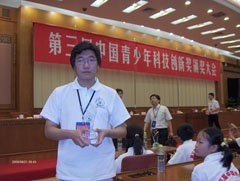 The 3rd National Youth Competition on Science and Technology Innovation, which is known as the Noble Prize on Science and Technology Innovation for Youth in China, disclosed its results on Aug. 21st and the award ceremony was held in People's Hall, Beijing. Sun Bo, Grade 2002 of NENU's School of Software, achieved the Award for Technology Innovation, and thus became one of the 19 undergraduates with such an honor, which is a present to NEU on the occasion of the 60th anniversary of Northeast Normal University. Successively, NENU has got two students with the honor so far. (From the Youth League, translated by Han Xiaoying, and revised by Zhang Yan)