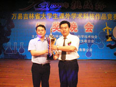 In the 2007 "Challenge Cup" Competition of Jilin College Student Extracurricular Academic and Science Works, the 16 works sent by NENU all won the prizes. Works from Li Mu, Tian Qin, and Hu Lanjuan of the School of Life Science won Special Prizes, works from Zhu Xingtao, Yu Juanjuan and Su Zhongwen of the School of Politics and Law, Sun Bo, Gan Lu, Wang Shoujia and etc. won the first prizes. Two works from the School of Chemistry and one from the School of Computer Science, School of Life Science, and School of Education Science won the second prizes. Two works from College of Urban and Environmental Science, two from the School of Computer Science, two from the School of Politics and Law and one from the School of Economics won the third prizes. The school ranked the first with a total score of 620, and won the highest prize "Challenge Cup". The school was honored "Excellent Organizing Model". Yang Xiaohui, Deputy Secretary of Party Committee and Vice-President was awarded the prize of "Excellent Work". Teachers of the school Liu Bao, Wang Deli, Hu Haibo, Hu Minxian, and Wang Wenyong were awarded as "Excellent Tutor".