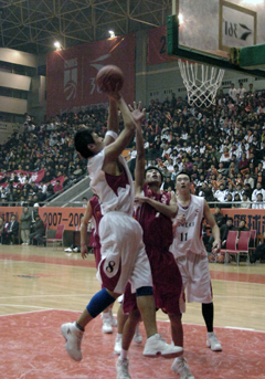 The afternoon of November 6th saw the first game of the 2007-2008 361°China University Basketball Super League (CUBSL) tournament. NENU basketball team defeated the visiting team from Liaoning University, which was the runner-up of men’s third CUBSL, at 68-62. NENU got their tails up for the final of the league championship.