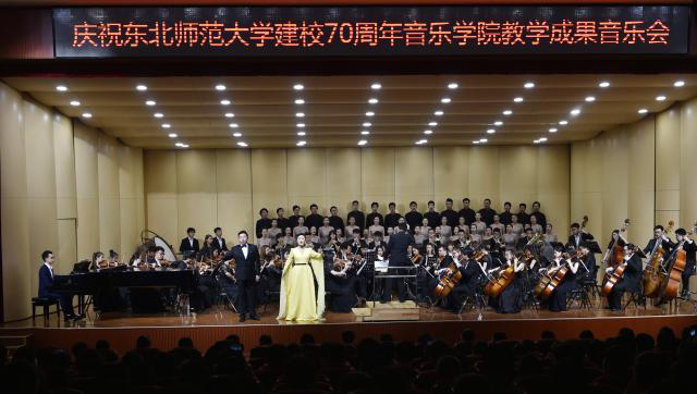 On the evening of September 9th, a concert held by the School of Music to celebrate the 70th anniversary of NENU lasted for one hour. Teachers and students of the school played 10 programs together on the stage, including Die Fledermaus Overture, O Sole Mio, le Nozze di Figaro(clip), Building Chinese Dream. The Concert presented a brilliant performance and won bursts of applause. At last, the concert came to a successful end with the symphony chorus Cheers for happiness.