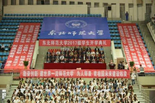 On September 2nd, a grand opening ceremony of 2017 freshmen and gave the first lesson in enrollment education was held in the comprehensive gymnasium in NENU. NENU leaders including Yang Xiaohui, Liu Yichun, Wang Yan, Ma Xiaoyan, Guo Jianhua, Gao Hang as well as president assistants Chang Qing and Xue Lifeng all attended the ceremony.