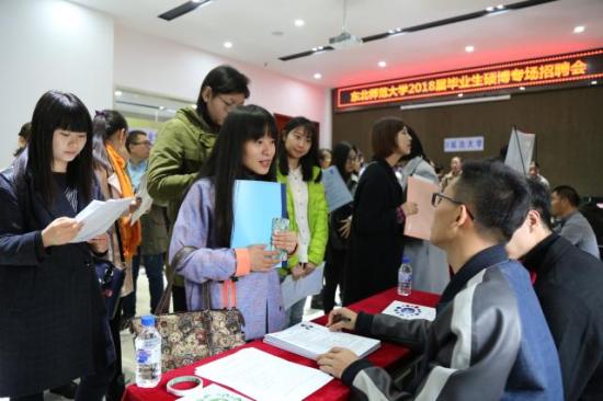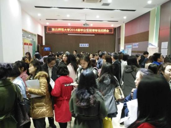 On the morning of October 27th, 'The Job Fair for Master and PhD Graduates Session for University Teachers, Tutors and Staff' was successfully held in the career center of NENU on the main campus. Ocean University of China, China University of Petroleum (Beijing), Yanbian University, Northeast Forestry University, Changchun University of Technology, BOE Technology Group Co., Ltd., Jiangsu Fangyang Group Co., Ltd., and 60 employers in total from Beijing, Qingdao, Harbin, Shenyang, Changchun, Yanbian, Tangshan, Shijiazhuang and other places attended the job fair, which provided 1837 opportunities for students. 3069 master and PhD graduates from 20 colleges and universities in Northeast China attended the job fair and 72.93% of them graduated from NENU.