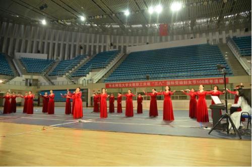 On March 7,In the NENU general Gym were beautiful songs and dances performed, together with cheering, applause, and laughter going up again and again for the celebration of the 108th Anniversary of the International Women's Day. To celebrate the International Women's Day, women's committee and labor union organized themed activities of "Women's Heart to the Party and a New Era of Construction". Some party and government leaders, the chairmen of labor unions of the grass-roots units, the members of Women Workers' Committee and more than 800 faculty members participated in the activities. Wang Yan, deputy secretary of the Party Committee of NENU, attended the event and delivered a speech.