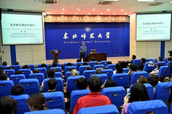 On September 20th, the first "Great Lecture Hall- The Nature Beauty of Literature of NENU" with the topic of "Explore the Sciences - Scientists Visit the Campus" was held in NENU, hosted by the Propaganda Department of the Party Committee and the School of Chemistry. Academician Tang Yong, a member of the Chinese Academy of Sciences and deputy director of the Shanghai Institute of Organic Chemistry of the Chinese Academy of Sciences, was invited to give a report entitled The Advance in Failure and Contingency for the teachers and students of NENU.